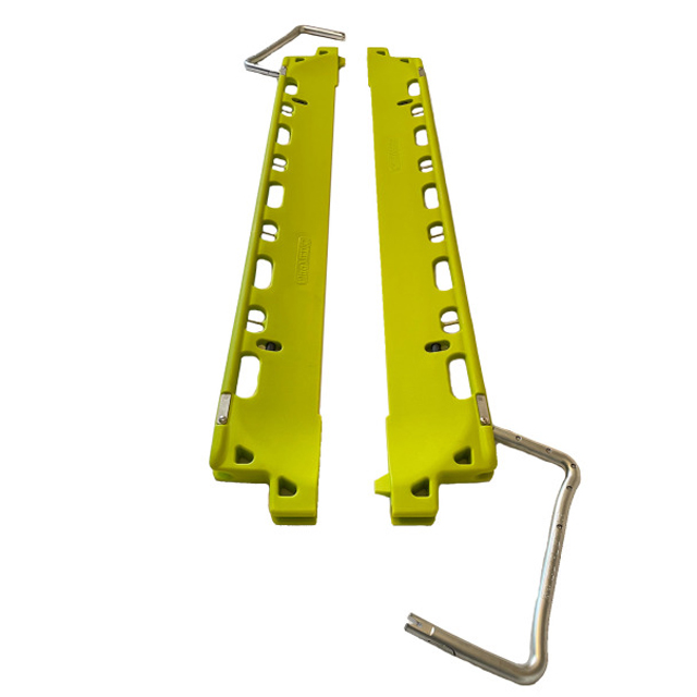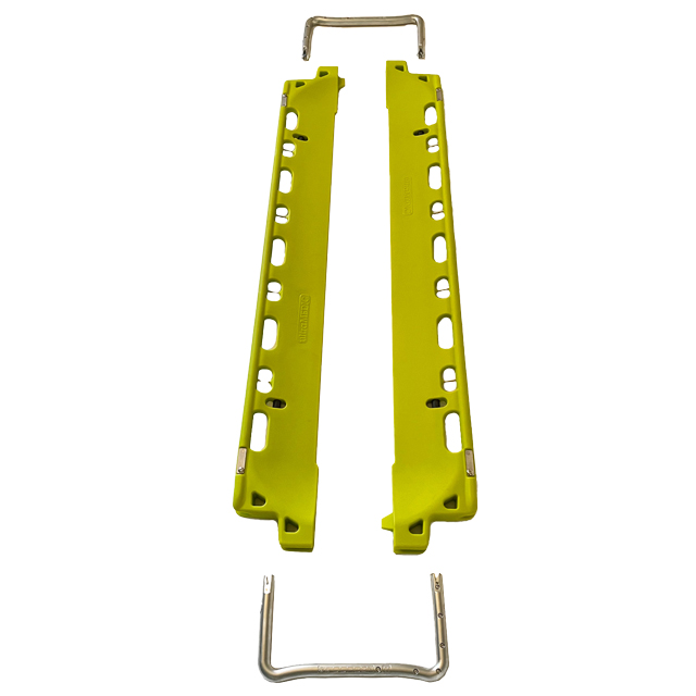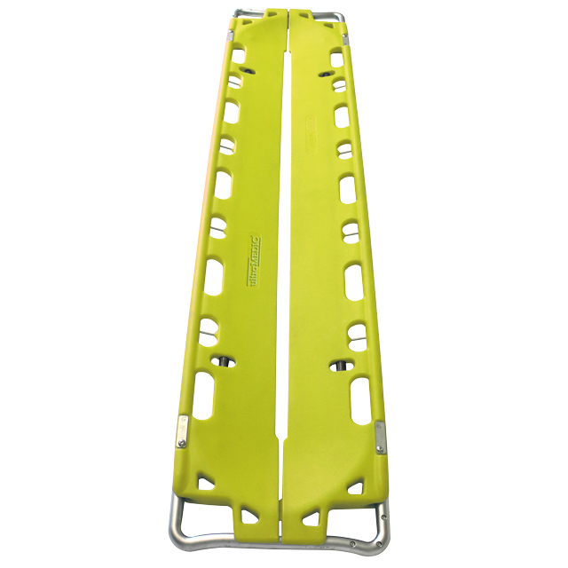 Die beidseitigen Bügelverschlüsse und die besonders flache Schaufelkante ermöglichen ein schnelles und einfaches Aufschaufeln und Arretieren der beiden Schaufelhälften. Die konkave Form gewährleistet eine vollständige Ruhigstellung des Patienten für einen einfachen und sicheren Transport. Zudem ist der ultraCOMBI-STRETCHER II Röntgen- und CT-tauglich.