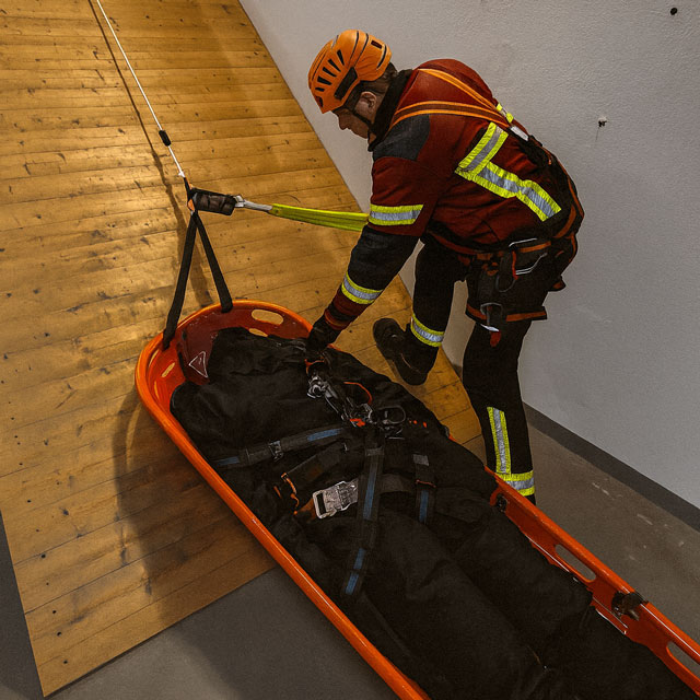 Das multifunktionale System des SKYLOTEC RSR-Kit aus Sicherungsgerät, Steigklemmen, Bandschlingen, Karabinern und Seil ermöglicht einen einfachen Rettungsplan durch Ablassen oder Aufziehen ohne weitere Hilfsmittel. Außerdem ist es mithilfe von mehreren RSR-Kits möglich, eine einfache Rettung aus Höhen und Tiefen durchzuführen.