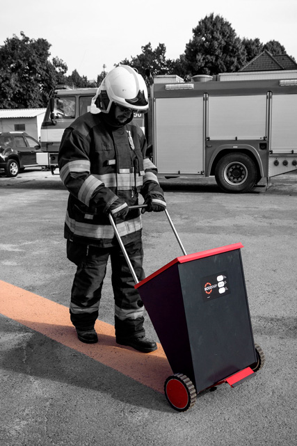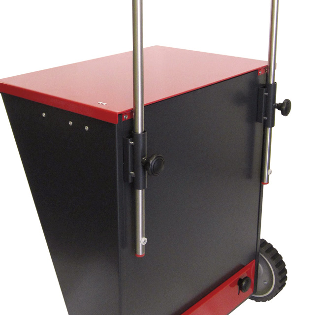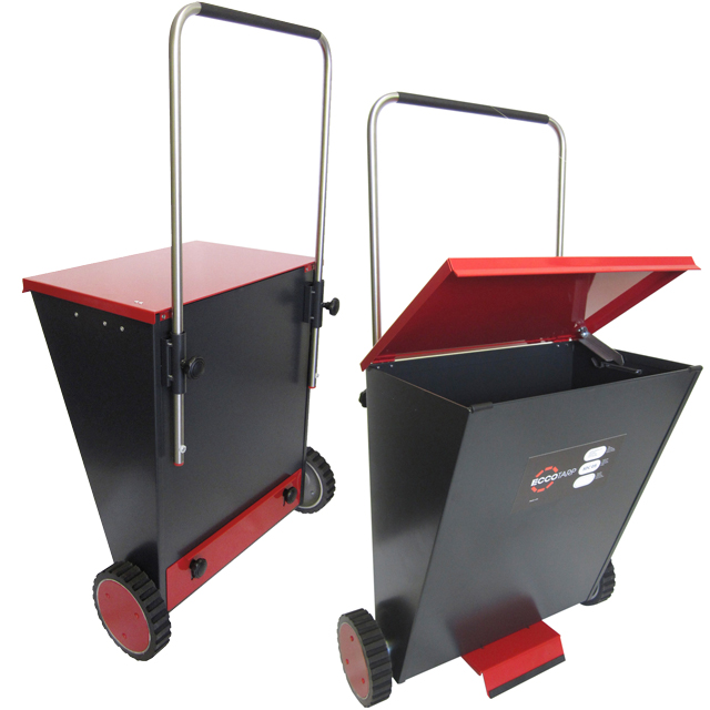 Das Absorptionsmittel-Granulat kann gezielt mit dem Streuwagen gfd® SDC 05 von ECCOTARP ausgebracht werden. Einfach den Deckel hochklappen und Bindemittel mit einer Körnung bis 8 mm einfüllen. Sowohl der Behälter als auch der Deckel des Streuwagens sind aus lackiertem Stahlblech, damit bleibt das eingefüllte Schüttgut auch bei Regen oder Spritzwasser immer trocken. Der Behälter hat eine hohe Steifigkeit, trägt bis zu 65 kg Gewicht und muss nach jedem Einsatz gereinigt werden. Abrasive Materialien wie Sand oder Streusalz dürfen nicht eingefüllt werden.