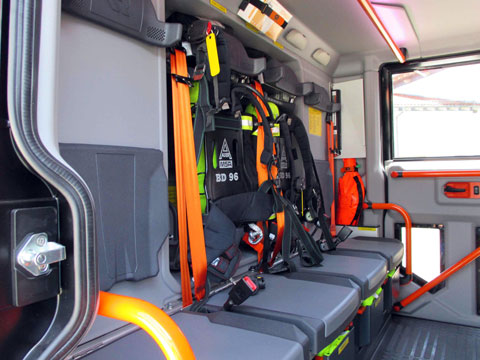 - Seitenairbags und Gurtstraffer im Mannschaftsraum