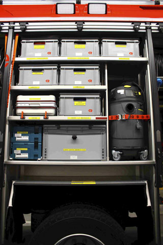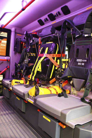 - 4 Preßluftatmer im Mannschaftsraum, 1 Preßluftatmer am Beifahrerplatz
