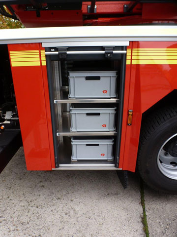 Halterungen für Überdruckbelüfter und Abseilgerät am Korb