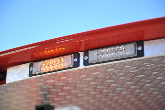 - Heckklappenblitzer in gelb und blau bei geöffneter Heckklappe automatisch anschaltend