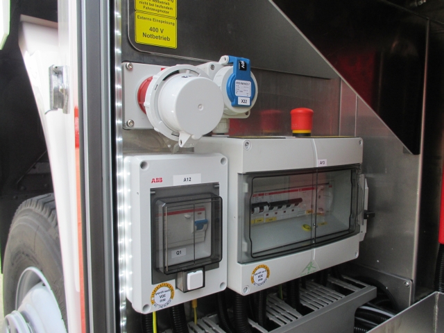 Stromanschluß zur Leiterspitze 1x400 V und 1x230 V und zum Rettungskorb 1x400 V und 2x230 V