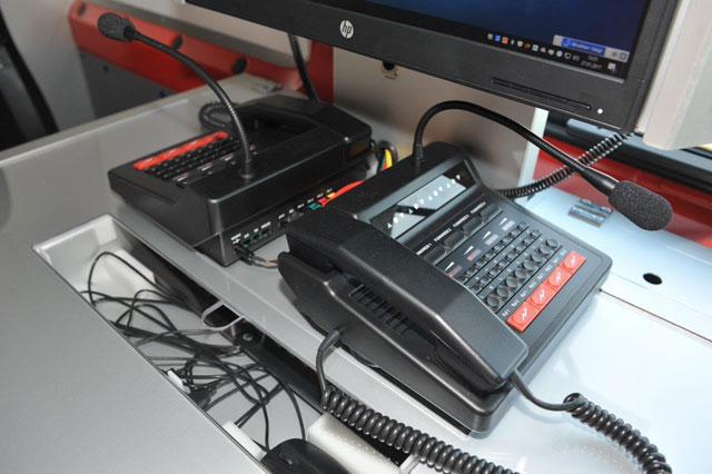 - Funk- und Besprechungstisch für zwei Kommunikationsarbeitsplätze in Aluminium inkl. Konsole