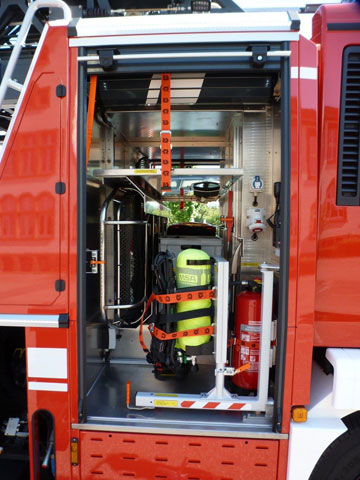 Halterungen für Überdruckbelüfter und Abseilgerät am Korb