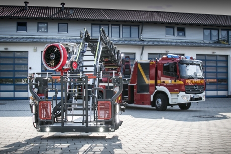 ROSENBAUER Monitor RM 15 C am Korb mit verstellbarer Monitordüse und Schwerschaumaufsatz