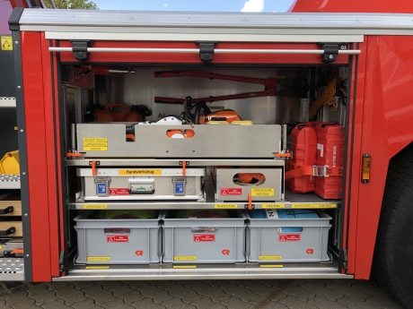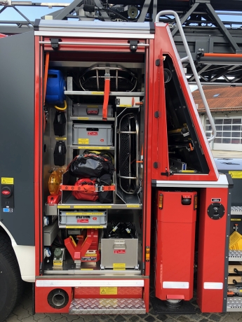 Halterungen für Überdruckbelüfter und Abseilgerät am Korb
