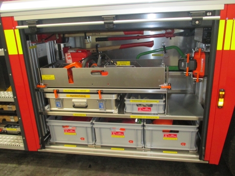 Halterungen für Überdruckbelüfter und Abseilgerät am Korb