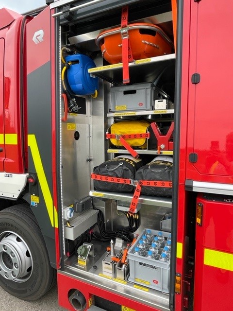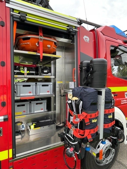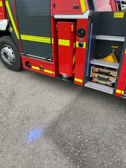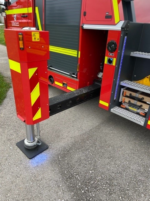 - Beleuchtung an der Spitze der Unterleiter mit LED-Scheinwerfern