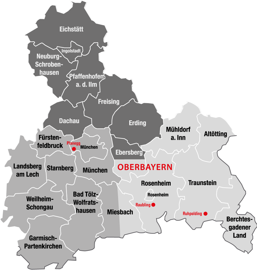 Johannes Pongratz ist für das westliche Bayern von Fürstenfeldbruck bzw. München bis nach Garmisch-Partenkirchen zuständig, Michael Ebert für den östlichen Bereich von Mühldorf am Inn bis ins Berchtesgadener Land und Clemens Hiesgen betreut den restlichen Teil, der sich im Norden anschließt.